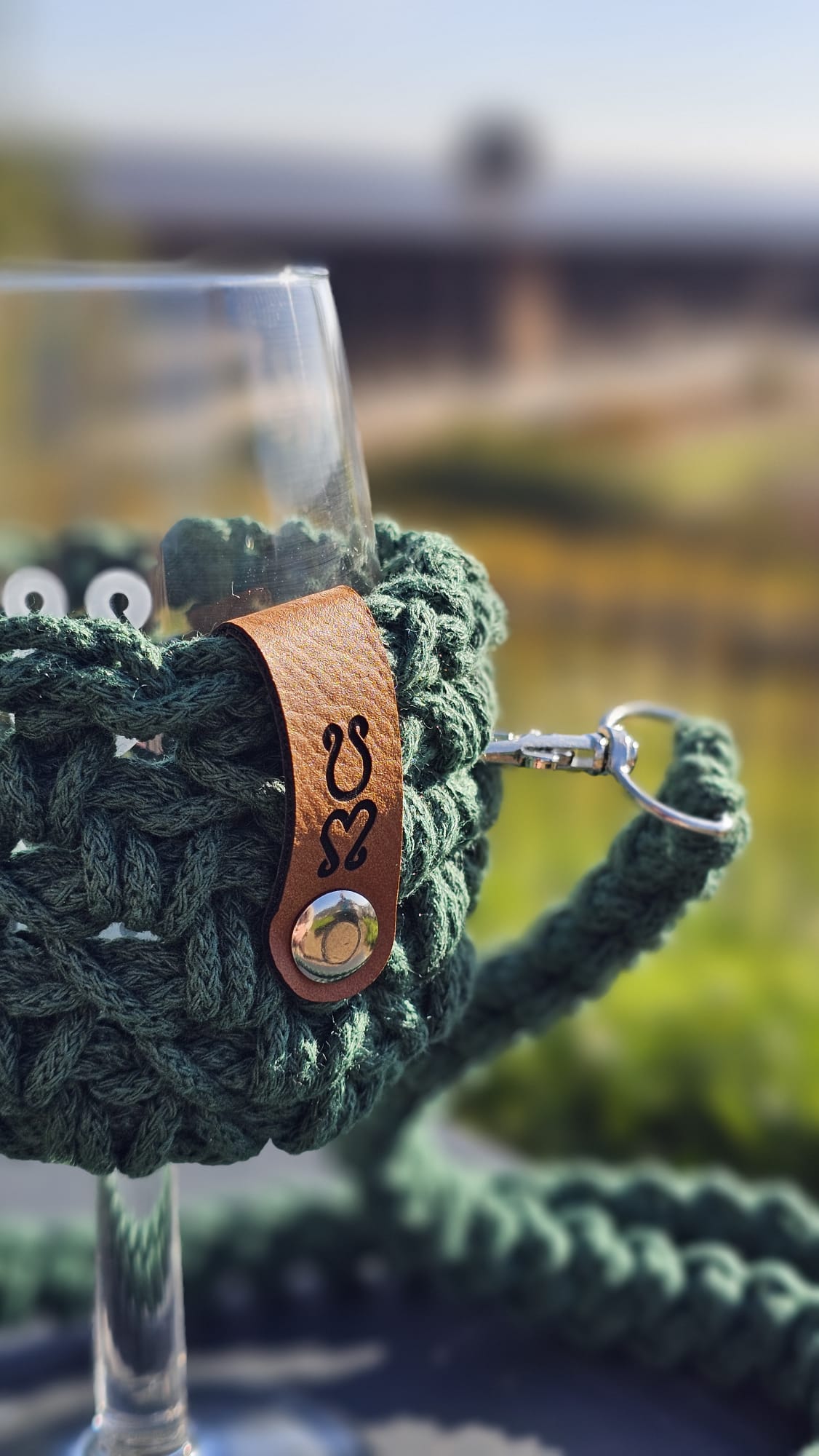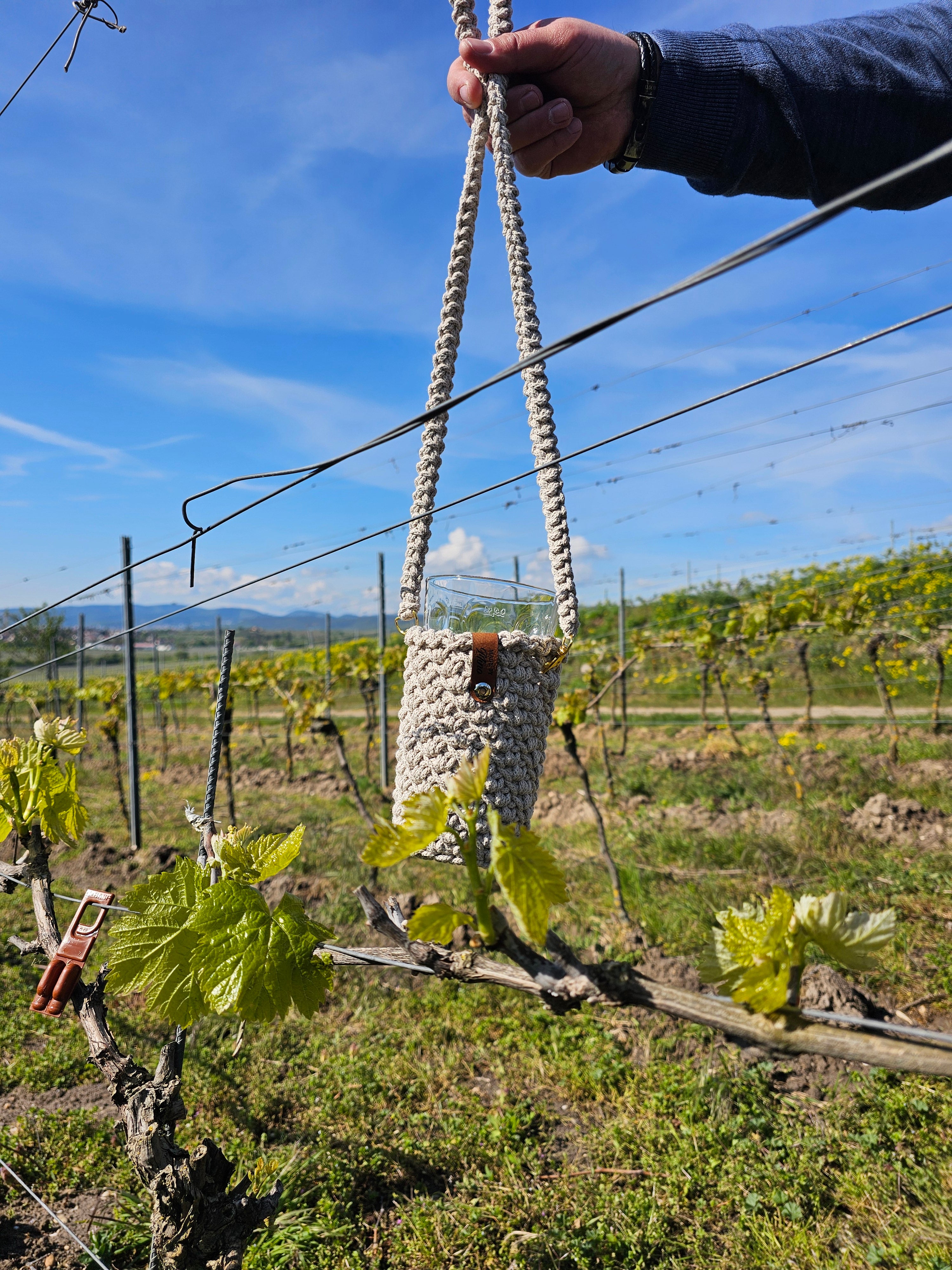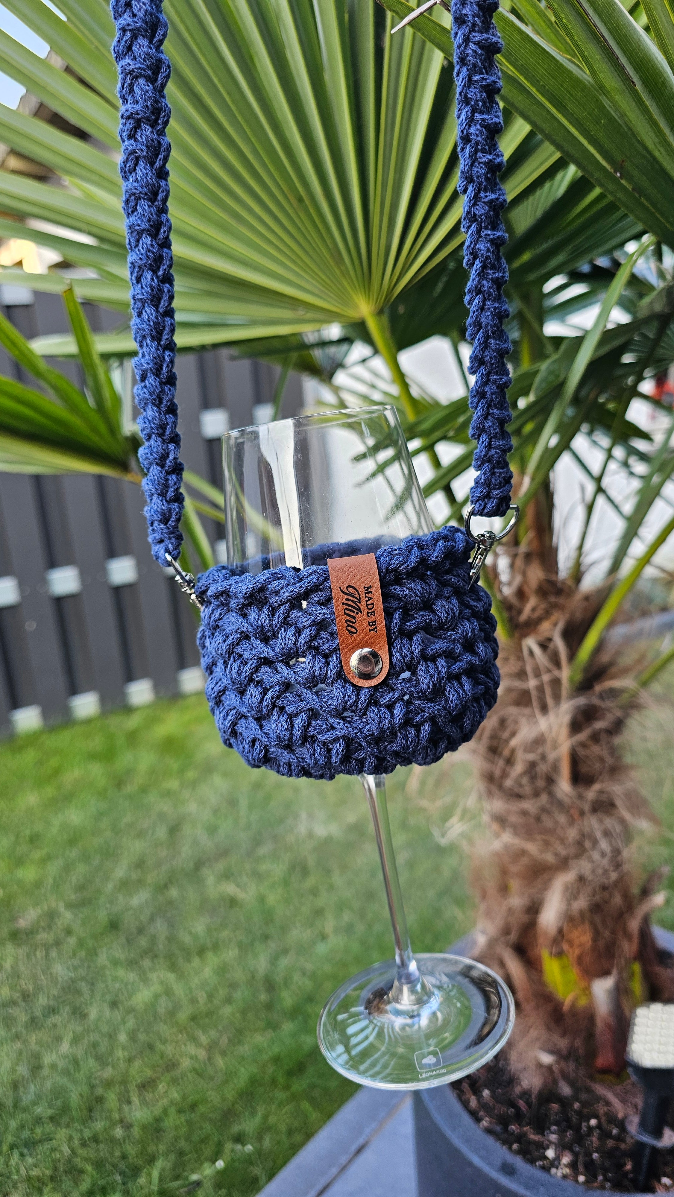 Ein Standartrotweinglas passt in den Halter rein.